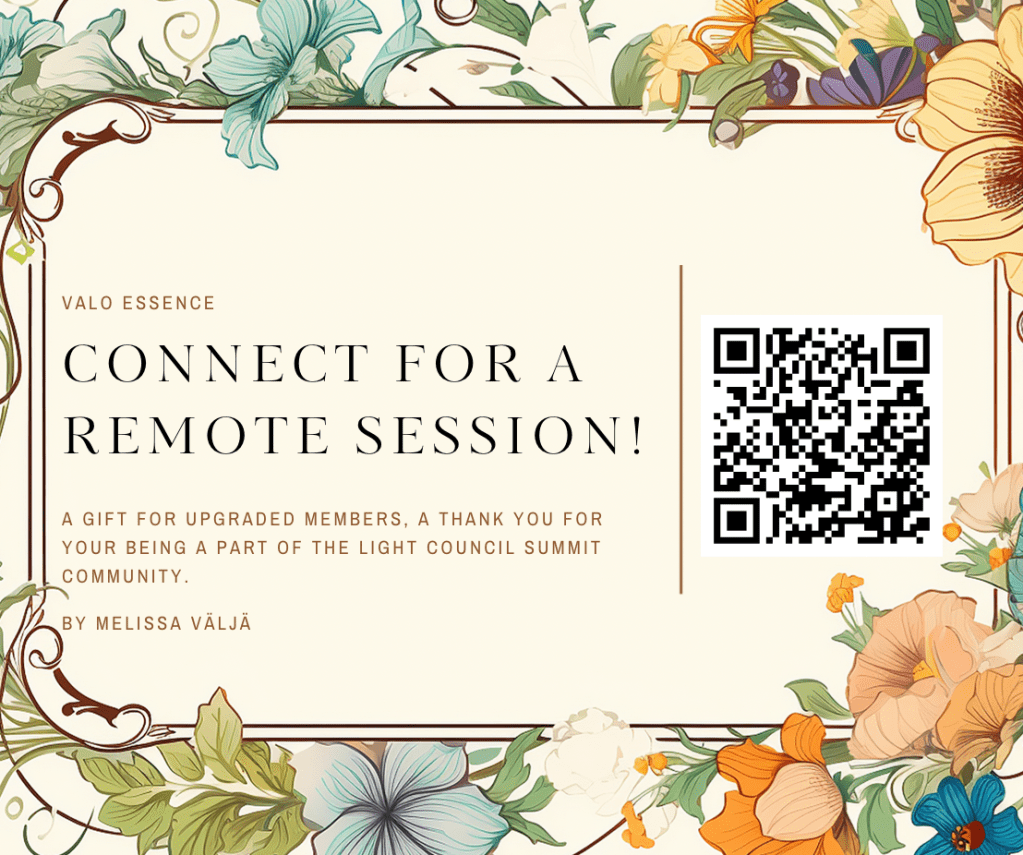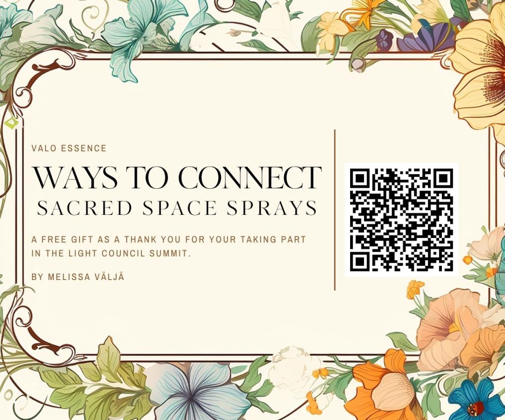 My name is Melissa Väljä and I’ve been a “healer” for a really long time, for many incarnations and life times. Valo Essence is the way I work with the “light essence” from flowers, gems, sacred spaces, mushrooms, trees, and sea essences.